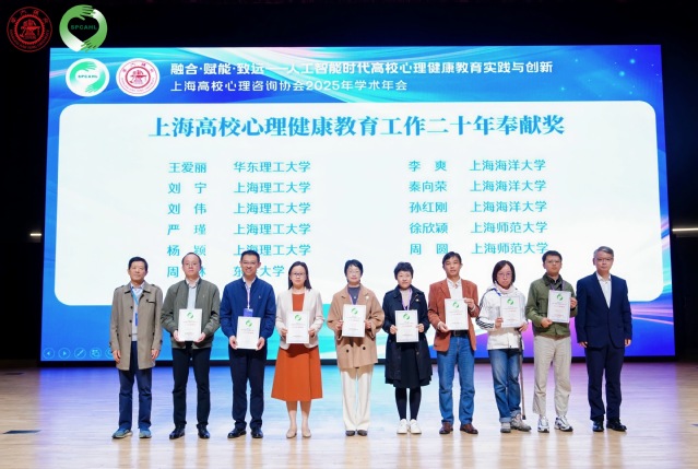 在备受瞩目的年度奉献奖颁奖环节,我校教师收获颇丰。学生工作部(处)刘伟、杨颎,管理学院严瑾、刘宁四位老师荣获“上海高校心理健康教育二十年奉献奖”。中英国际学院蔡卉、机械工程学院韦彪、陈璇、健康科学与工程学院谢宝歆四位老师荣获“上海高校心理健康教育十年奉献奖”。这一奖项是对长期坚守心理育人一线、默默奉献的致敬与肯定。