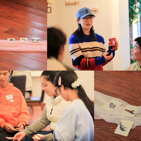 随后,金小燕老师引导大家进入“孤独感评分”环节,她提出:“以你对卡片上的动物的了解,你会如何给它的孤独感打分?”在激烈的讨论后,大家纷纷给出了自己的见解。通过这一环节,大家不仅进一步熟悉了身边的同学,也学会了从多元视角理解“孤独”。为进一步探寻心灵与自我,金小燕老师用“OH卡分享会”将活动推向了高潮。同学们根据手中抽到的卡片,围绕“图中预示着什么生活困境?”以及“如果是你手中的动物遇到此类问题,它会怎么做?”两个问题进行了深层的分析。同学们结合自己的经历向伙伴们分享了自己的分析与想法,大家耐心地倾听着组员的想法,并积极给予回应,从分享会中获得了打破困境的方法和力量。