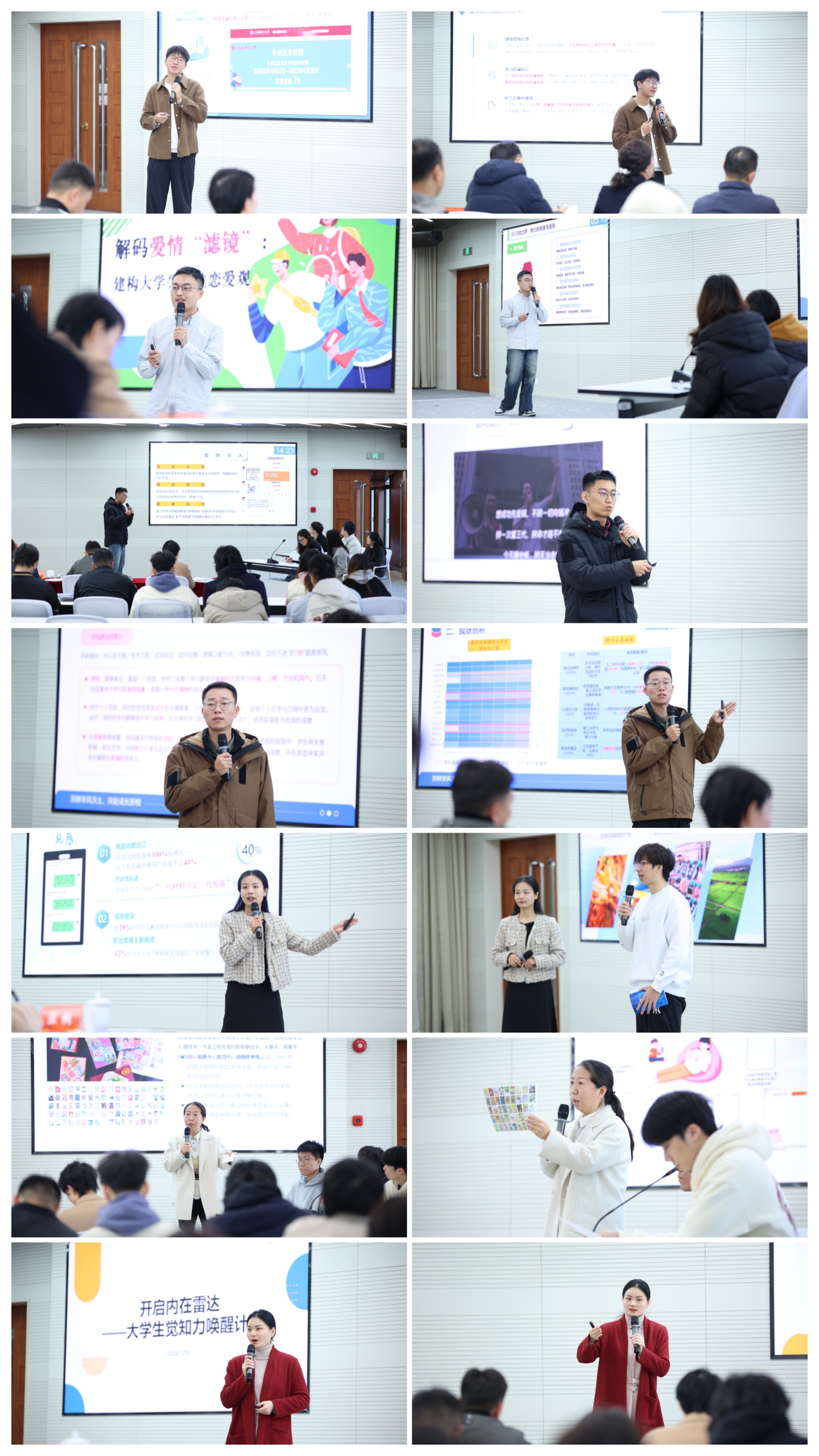 本次活动自9月启动以来,经过各学院推荐选送、教案设计与说课展示等多轮筛选,最终有8位辅导员脱颖而出,晋级现场展示环节。该环节重点考察辅导员对党的创新理论的学习宣传阐释能力,以及主题班会的现场组织、语言表达等核心素养。参赛选手紧扣大学生成长需求,围绕“反诈防诈安全守护”“理性恋爱观建构”“学风建设强化提升”“专业使命担当培育”“摆脱手机束缚与觉知力唤醒”等贴近学生生活的主题,精心设计班会流程。在限定时间内,他们以多元视角切入,将鲜活案例、详实数据与专业理论深度融合,通过情景模拟、互动讨论、视频分享等丰富形式,生动展现了主题班会的思想引领力与育人实效性,赢得现场阵阵掌声。